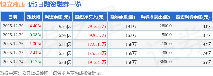 证券之星动静,截至2025年12月30日收盘,恒立液压(601100)报收于112。96元,上涨4。4%,换手率1。27%,成交量17。09万手,成交额19。18亿元。